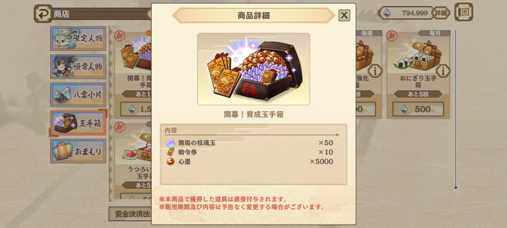ショップに新商品『開幕!育成玉手箱』を追加いたしました。