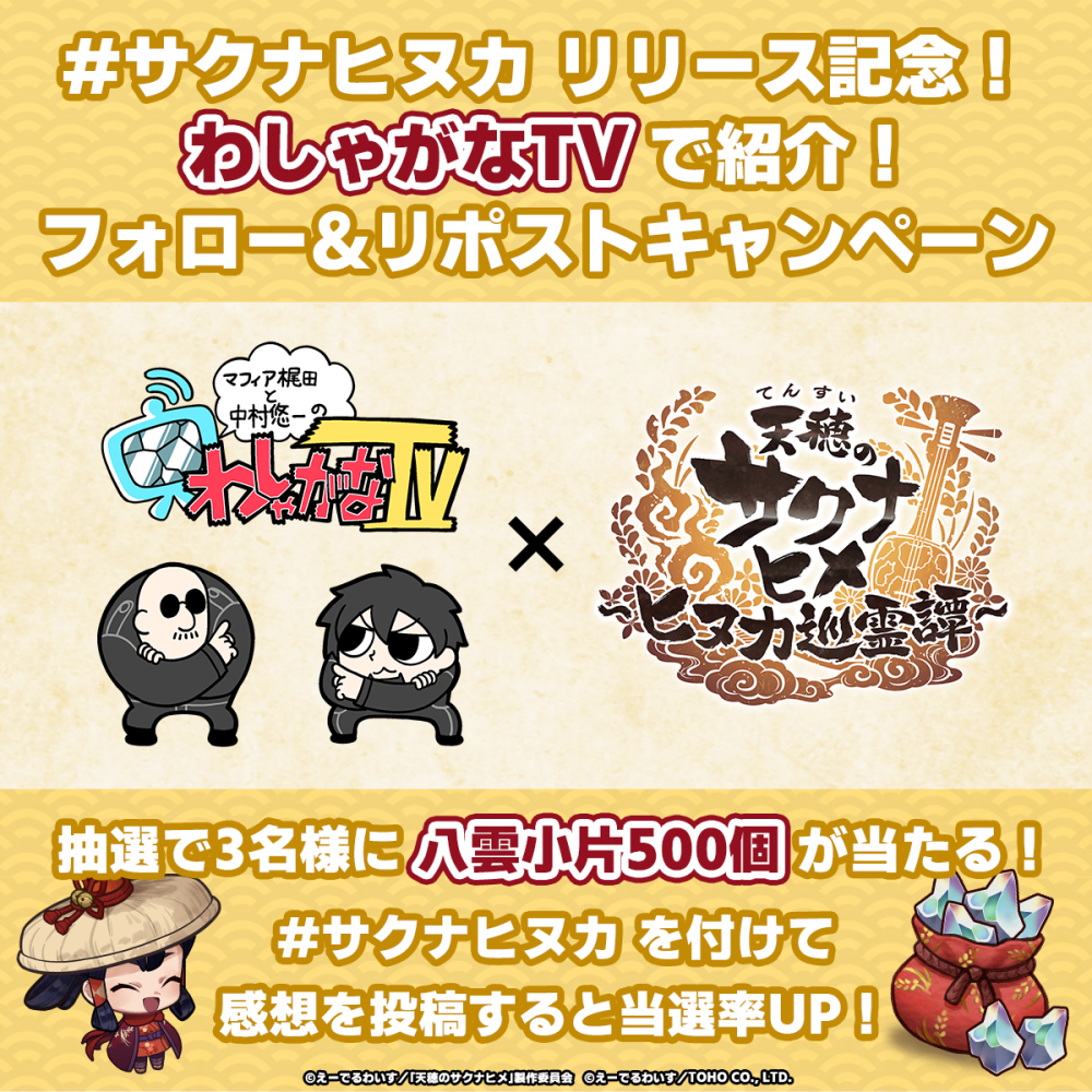 サクナヒヌカと【YuoTube】マフィア梶田と中村悠一の「わしゃがなTV」チャンネルとのタイアップ動画配信中です!