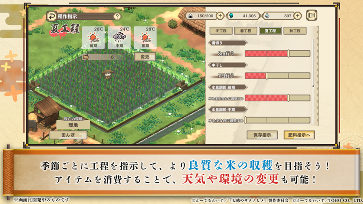 本作では、季節ごとに「どのように稲作を進めるか」を細かに設定することができます。